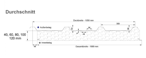 Dachprofile können mit einem Zuschnitt im Bereich von min. 50 bis max. 300 mm hergestellt werden.